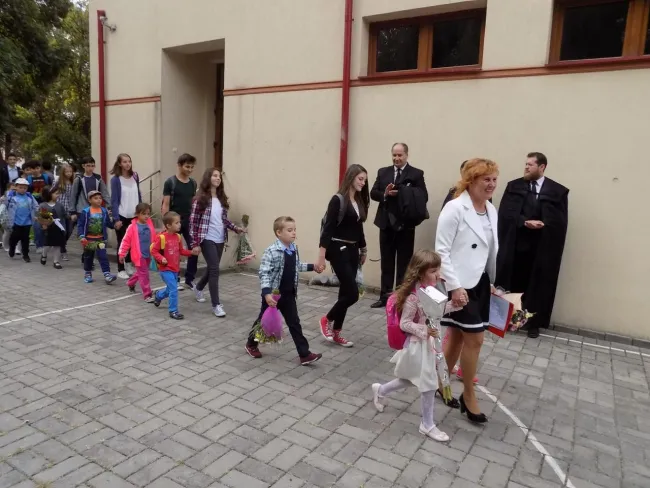 A beszédeket követően a diáksereg bevonult a feldíszített, tiszta tantermekbe. Az előkészítő osztályosok egy kis iskolakezdő csomagot vehettek át Orosz Csabától és Balázs Botondtól, a városi RMDSZ ezzel is enyhítette a szülők tanévkezdési kiadásait.