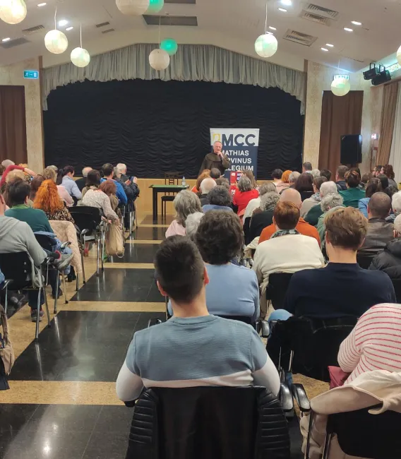 Az előadás végén közösen felállva elimádkozták a jelenlévők a Miatyánkot.