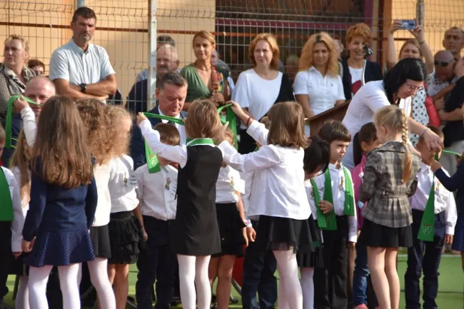 Ezt követően, az iskolaigazgató megköszönte a magyar állam támogatásait, ismertetve a szülőkkel, melyek is voltak ezek: a Kárpát-medencei Óvodafejlesztési Program részeként végzett óvodafelújítás, illetve az elemista kisdiákok számára ingyenes délutáni foglalkozás biztosítása. A igazgató bizakodva beszélt arról is, hogy további segítséget fognak kapni annak a közös célnak érdekében, hogy ez a szép gyereklétszám minél tovább fennmaradjon. Hisz egy jól felszerelt iskolába, melynek tanári kara jól felkészült pedagógusokból áll, a vegyes házasságból származó gyerekeket is szívesebben jártatják.