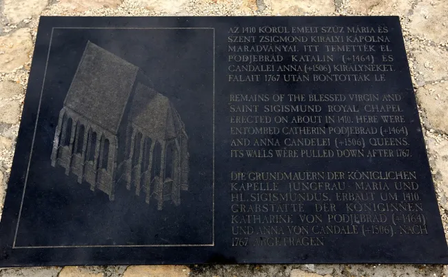 Podjebrád Katalin és Candale-i Anna királynékat, akik mindketten gyermekágyi lázban haltak meg, a Szent Zsigmond királyi kápolnában temették el, ami a Budai Várnegyedben 1410 körül épült, és a mai Szent György téren állt. A templom átvészelte a török, és a keresztény ostromokat, bár 1686-ban, Buda visszafoglalásakor súlyosan megsérült, romjai még sokáig álltak. Végül falait 1767 után bontották le. 1827-ben térrendezés közben a templom talpfalait „a rendelt alapig” felszaggatták, ekkor találtak rá Katalin sírjára. Sajnos, a kor viszonyai között szakszerű régészeti feltárás nem történt. Candale-i Annát II. Ulászló halálakor, halála után tíz évvel, 1516-ban újratemették férje mellé, középkori királyaink temetkezési helyére, a középkori és koraújkori Magyarország szakrális templomába, a székesfehérvári Nagyboldogasszony-bazilikába, ahová tíz évre rá, 1526-ban a mohácsi csatában életét vesztett fiát, II. Lajos magyar királyt is temették.