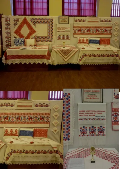 Az al-dunai közösségekből a hertelendyfalvi Tamási Áron Székely-Magyar Művelődési Egyesület népművészeti csoportjának, a székelykevei Varrócska Kézimunkacsoport és a pancsovai Erős Mária gyönyörű munkáit tekinthették meg a vendégek. A kiállított darabok egyenként és együtt is különleges töltettel rendelkeznek: közelebb visznek bennünket múltunk megismeréséhez, értékrendünket gazdagabbá teszik, magyar kultúránk részét képviselik. Értékmentés, ahogyan az al-dunai népi alkotások, a varrottasok készítői ragaszkodnak az eredetiséghez, teljes szépségében varrják újra azt, amit őseik megalkottak. Évtizedek óta továbbadják a gazdag mintakincset, a díszítőelemként használt motívumokat, valamint a varrási technikát változtatások, módosítások nélkül viszik tovább.