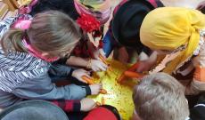Ezután családokba osztottak minket, hogy a felmerülő problémákat közösen tudjuk megoldani. Az első feladat rögtön az volt, hogy próbáljuk meg elrabolni a menyasszonyt. Igyekeztünk csellel, rábeszéléssel, furfangos ötletekkel, de nem tudtuk sehogy megkaparintani. Ennél a próbatételnél mindenki kudarcot vallott, elkezdtük volna hát a vacsorát a tyúkhúslevessel, de mint kiderült még neki sem fogtak az elkészítésének, így nekünk kellett besegítenünk. Nagy versengés indult a családok között a répapucolásban, de mivel kés nem akadt, helyette mindenki csak kanalat kapott. Miután meghámoztuk és megmostuk a zöldségeket akkor derült csak ki nagy csodálkozásunkra, hogy a tyúkok még kint szaladgálnak az udvaron, így azokat is össze kellett szednünk valahogy. Szerencsére a tyúkokat labdák helyettesítették, ha nem így lett volna, talán még most is a tyúkokat hajkurásznánk. Miután az összes labdát labdát felszedtük, hatalmas fogócska kerekedett ki a játékból. Futkározott mindenki az udvaron jobbra-balra, amerre csak értük. A nagy rohangálás után megéheztünk, hát neki is fogtunk a nagy lakmározásnak. Úgy tömte mindenki a hasát, mintha harcolnia kéne az utolsó falatokért, de teljesen felesleges volt a nagy sietség, hiszen volt bőven étel, sok meg is maradt. A vacsora végeztével minden család odaadta a nászajándékot az ifjú párnak, majd a tánc következett.
