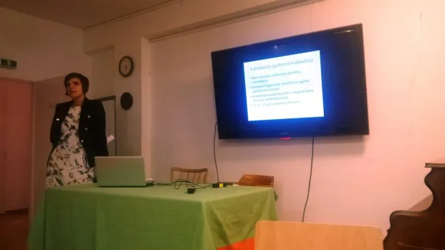 Az előadónő a disszertációjának könyvvé bővített verzióját (Dedikáció és mecenatúra Magyarországon a 17. század első felében) ismertette röviden, amely során a résztvevők egy átfogó képet kaphattak a mecénások szerepéről az irodalomban. Brigitta kutatásában a Magyarországon 1600-1655 között kiadott magyar nyelvű nyomtatványokat vizsgálta, és arra kereste a választ, hogy kik voltak valójában a támogatók, milyen műveket támogattak és miért tették azt. A kutatás során arra az eredményre jutott, hogy a mecénás társadalmi hovatartozása erősen befolyásolja a 17. századi magyar irodalom alakulását.