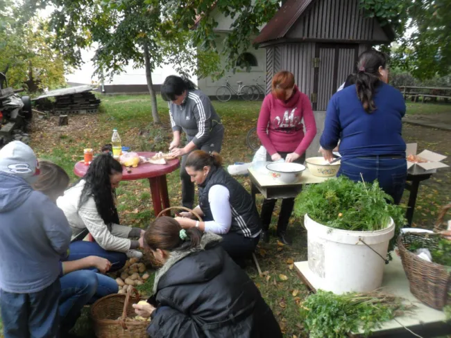 A gyülekezet felnőtt tagjai eközben a bográcsnál és a vacsora elkészítésénél segítettek. Délután 5 órakor közös gulyásevéssel, és a szülők által készített házi süteményekkel ünnepeltük az egyik legnemesebb gyümölcs, a szőlő szüretelését. Aki pedig nem fáradt el a sok játékban és az evésben, az a rendezvényt záró táncházban vezethette le a maradék energiáját.