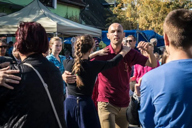 A jó hangulat mellé népzene, népzene mellé néptánc is dukál, így a környékbeli, magyar lakta településekről érkező táncosok fokozták az amúgy sem épp melankolikus szombati napot. A fellépést táncház követte, ahol a Petőfi Sándor ösztöndíjas Izsák Zoltán Sotiris vezette a tánc alkalmat. Zenei kíséretnek a Hertelendyfalváról érkező Csörömpölő zenekar tagjai adták a talp alá valót.