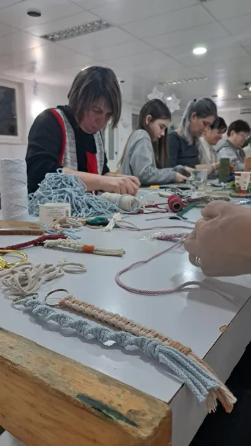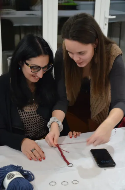 Elsőként Vajdahunyadra látogathattam el, ahol a helyi magyar közösségnek alkotóestet szerveztünk Zsidai Sára ösztöndíjas társammal. Sárával lelkesen vártuk a jelentkezőket, akik szép számmal gyülekeztek a rendezvényre. Számomra mindig meglepetést okoz, amikor a résztvevők kipakolják az otthonról hozott fonalaikat, és az elvétve talált makramédíszeiket érdeklődve mutogatják.