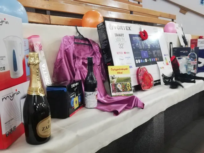 Éjfélre az izgalom a tetőfokára hágott… A Széll Bíborka és Kiss Mónika vezette tombolahúzás megkezdődött. A porondon, a padokon: falióra és azonosíthatatlan rózsaszín plüssfigura, tányér-, edény-, ételfőző szerszám- és evőeszközkészletek, elektromos konyhagépek… egy könyv és egy mérleg… Csokoládé, szeszes ital és fehérnemű… Porszívó, boholytalanító, aprító és vasaló… Mulassatok asszonyok, mert ha mindezt megnyeritek, holnaptól takaríthattok… (csáboskodhattok) meg főzhettek! De azért legközelebb, mikor a magyar házban a ti napotok lesz… Március 7-én, az RMDSZ Nőszervezet dévai csapatának Nőnapi Ünnepségére gyertek!