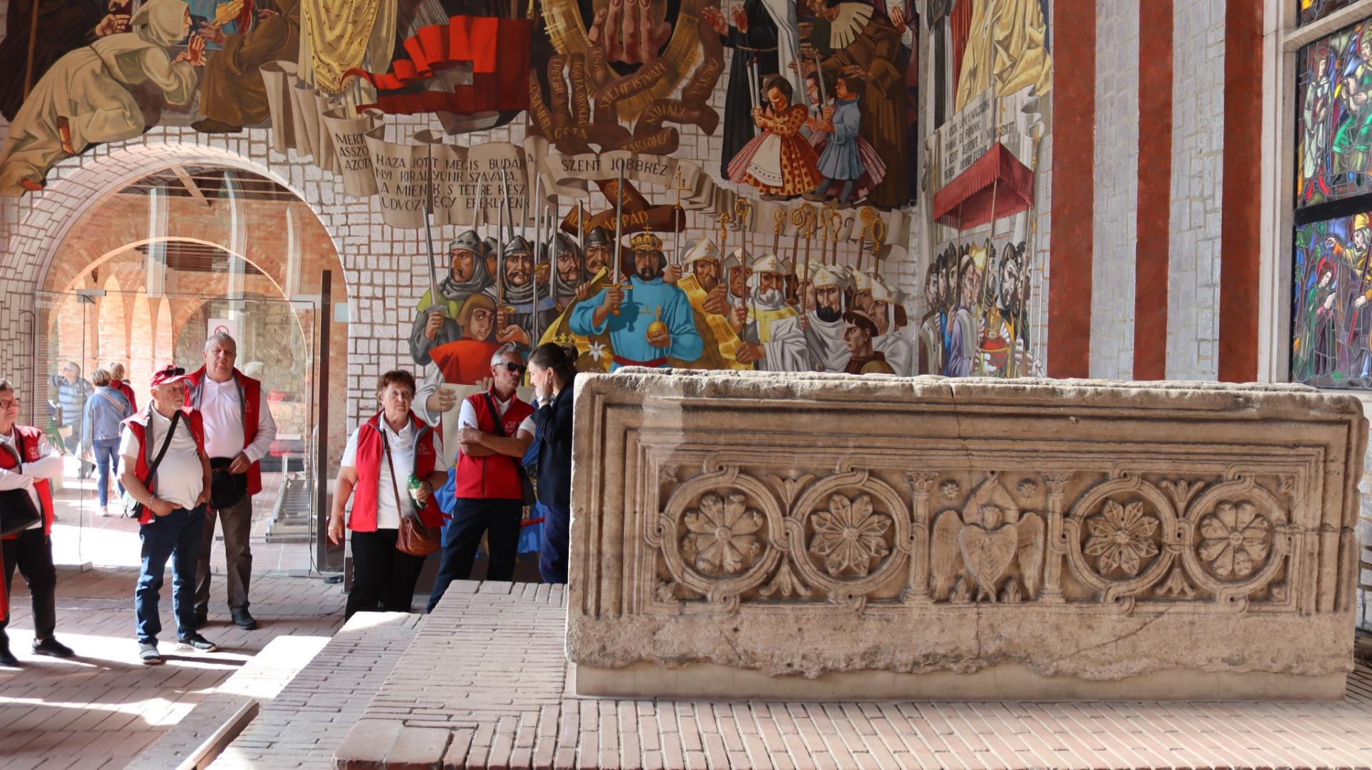 A Bazilika falai közt állt az ország trónusa és itt őrizték a koronázási ékszereket: a koronát, a jogart, a kardot és a palástot, és itt tartották az országgyűléseket, itt hirdették ki az Aranybullát. Szent István szarkofágját és a történelmi freskókat is megcsodáltuk a tagokkal.