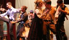 A Háromszék Táncegyüttes valóban „sajátosan groteszk, a prűdeket meghökkentő, nyitottakat megnevettető” mezőségi lakodalmat megidéző előadásáról én magam legalábbis az érzelmek teljes skáláját megélve vittem haza magamban felejthetetlen táncszínházi élményem. A Traube terem megtelt, a város apraja-nagyja kíváncsi volt a méltán népszerű előadásra, melyet 2013-mas bemutatása után idén közkívánatra tűztek újra műsorra és így hosszú évek után ismét a turné egyik helyszíne lett Medgyes. A szervezők helyi partnerei a MADISZ és a Gyöngyvirág Néptánccsoport voltak.