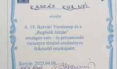 A Magyar Versmondók Egyesülete, az Ikervári Batthyány Lajos Művelődési Ház és Könyvtárral együttműködve, immáron tizenkilencedik alkalommal hirdette meg a Regösök húrján című országos vers- és prózamondó versenyt. A regionális verseny döntője két kategóriában, tíz és tizenkét éves, valamint tizenhárom és tizennégy éves korosztályban zajlott.