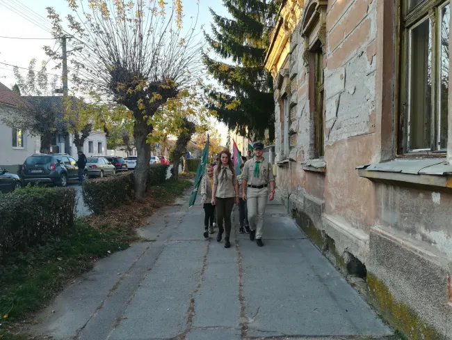 A fogadalomtételre a Tompa téren került sor, ahová az otthontól díszmenetben érkeztünk. A felsorakozást követően a Cserkészindulót énekeltük el, majd Pataky András rajparancsnok verssel köszöntötte az ifjakat. Mihály Dávid csapatparancsnok ünnepi beszédében felidézte gyermekéveit, mikor is cserkésszé vált, mely változás egész életére kihatott; a tanuláson, játékokon, táborokon és kedves emlékeken túl jóbarátokra lelt, kikkel együtt nőtt fel, s felnőtt éveiben is mellette állnak, szerelemet, s családot adott neki a cserkészet. Buzdította a gyermekeket, hogy az általunk felsorolt Cserkésztörvényeket, ne csupán ismételjék utánunk, ne csupán megtanulják, de legyen számukra útmutatás egész életükben.