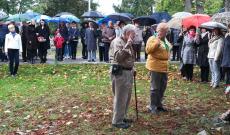 Október 6-a idén vasárnapra esett, szomorú vasárnap volt ez több értelemben. Az egész napos borult idő a megemlékezés időpontjában fordult esősre, így nemzeti gyászunkban az időjárás is osztozott. Idén az a megtiszteltetés ért, hogy a megemlékezőket a Csemadok Rimaszombati Alapszervezete nevében jómagam köszönthettem. Bár az időjárás sajátos együttérzése miatt egyre kevésbé kedvezett a kültéri megemlékezésnek ennek ellenére ki ernyővel ki ernyő nélkül, de rendíthetetlenül állt az esőben, így a Rimaszombati 4.sz. Hatavni István Cserkészcsapat is, akik minden évben díszőrséget állva fejezik ti tiszteletüket nemzeti nagyjaink előtt.