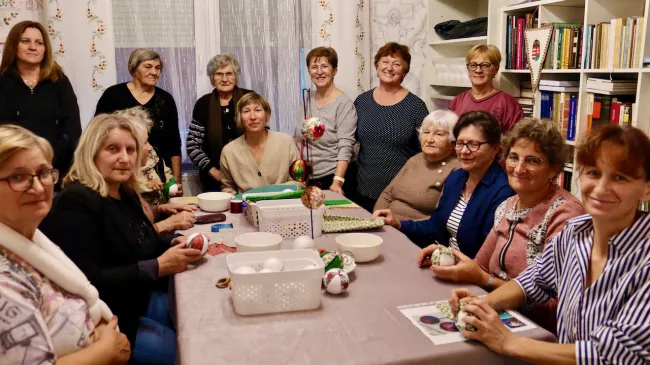 A mostani alkalmon karácsonyi textilek és aprólékos, régi kézimunka-hímzések kerültek a díszgömbökre. A foglalkozást Bódi Henrietta vezette, akinek lelkesítő útmutatása mellett a résztvevők nemcsak új technikát tanultak, hanem a fonó közösségi hangulatát is újra átélhették.