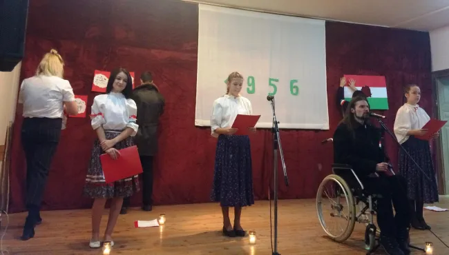 Ez ösztönzött arra, hogy közös filmnézős estet tartsunk. Egy történelmi dokumentumfilm, valamint egy magyar kisjátékfilm megnézése után, az addig a forradalomról csak tankönyvekből is ritkán olvasó fiatalok az 56-os eseményekben szereplő bátor és a szabadságért harcoló egyetemistákról beszélgettek 2018 októberében, Tiszakálmánfalván.