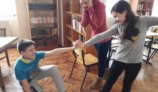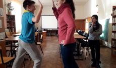 Hat magyar diák iratkozott fel a színjátszós listára, miután részt vettek a Pufi és pöttömségei programon, a következő pénteken már meg is tartottuk az első foglalkozást, melyre öten jöttek el. Megkértem, írjanak le egy pár gondolatot, érzést a színházzal, a megtartott programmal kapcsolatban. Örömmel készítettem elő a következő lépést, mert már az elejétől felfigyeltek a koncentráció fontosságára, az önkifejezés hangsúlyosságára, sőt, ezek mellett a “vicces” jelzővel is illették a pufiprogramot. Sokszor kerestük közösen a pontos kifejezéseket, ízlelgettük a magyar nyelvet, s amikor egy-egy mozgásos feladatnál elakadás volt, jött egy kis lazító gyakorlat, és haladtunk tovább. Jó volt egymásra hangolódva, apró pillanatképeket alakítani, sőt az utolsó foglalkozásokon már három szereplős jelenetek rögtönzését is kipróbáltuk. Törekedtem alkalmat teremteni beszélgetésre, vagyis „mesélésre”, ahogy mondaná Juli ragyogó szemekkel, jó volt kinyomozni, hogy ki milyen nyelven gondolkodik, álmodik. Különböző készségfejlesztő játékok, kortárs irodalom, pantomim - csipegettünk minden jóból, úgy igazából pufiztunk a világra. Szép élmény volt Andrea hangját hallani, amint kiejti egy vers számára legkedvesebb szavát, a csengőt, valamint Melit, ahogyan pontosan, türelmesen eljátszik egy szókapcsolatot, amíg a csapat kitalálja. A záró játék ünnepi momentuma is mókás volt, hisz a csoport viccmestere, Jani húzta ki a „mosoly” szót. Ki-ki megtalálta a helyét a csoportban, s bízom benne, továbbra is működnek az elindított folyamatok, mindenkinek a szívében még sok-sok öröm éled majd. A legbizakodóbb mondatot Antónia fogalmazta meg, miután elbúcsúztam tőlük, kellemes ünnepeket és boldog új évet kívánva nekik: „Akkor ugye jövő pénteken is találkozunk?”