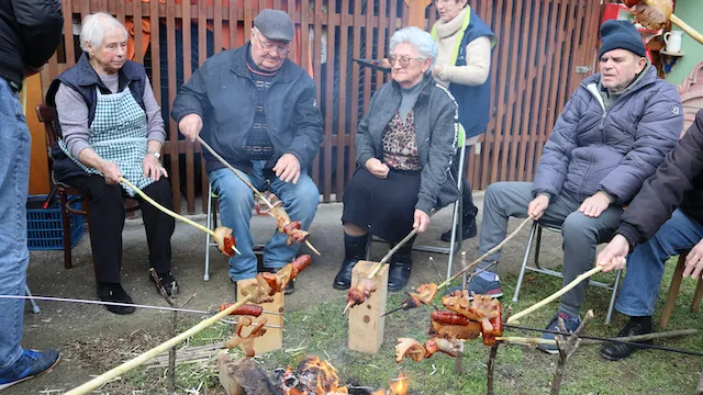 Az időjárás is kedvezően alakult: a hideg, szürke, ködös napok után éppen Vincékor kezdett melegedni az idő, és előbújtak az első napsugarak. Ezt kihasználva az udvaron kolbászt és szalonnát sütöttünk, hogy éhségünket csillapítsuk és jókedvünket fokozzuk.