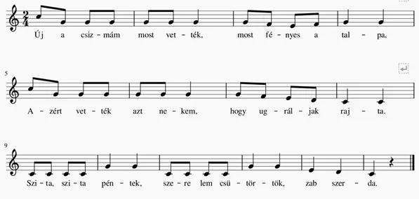 A dalra mindenki emlékezett, határozottan és egyöntetűen. A hozzá tartozó mozgásra már csak kevesen. A nem egyértelmű emlékek szerint a forgás iránya vagy dallamonként változott, vagy pedig a három dallam alatt egy irányba történt.