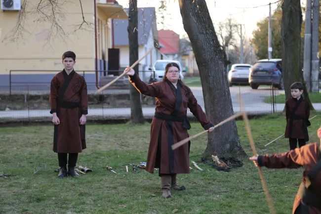 A fogadószervezetemmel, a Felföldi Dalia Iskolával harci bemutatót tartottunk, Jani pedig bőrműves foglalkozással várta az érdeklődőket. Koncertek, előadások, kézművesség, íjásztatás.