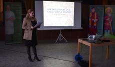 Kolonban az alapiskola magyar tagozatos diákjainak játékos, interaktív formában mutattam be a tárlatot. Nagyon sok érdekességet sikerült így megosztani a gyerekekkel. A foglalkozás során igazi időutazást tettünk a szentek legendái nyomán és az újkor szentjei is rámutattak, hogy mennyiféle úton lehet Istennel közösségben élni, akár orvosként, politikusként vagy éppen papként, püspökként, szerzetesként.