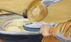 A falon látható például, ahogy lángost sütünk, kürtőskalácsot készítünk, bográcsozunk, halpaprikást főzünk vagy nyárson sütünk – pont úgy, ahogy év közben szoktuk. A jeleneteket tipikus magyar motívumok egészítik ki, mint például a fűzött pirospaprika, fokhagyma, napraforgó, kukorica vagy a dunai halászat képei.