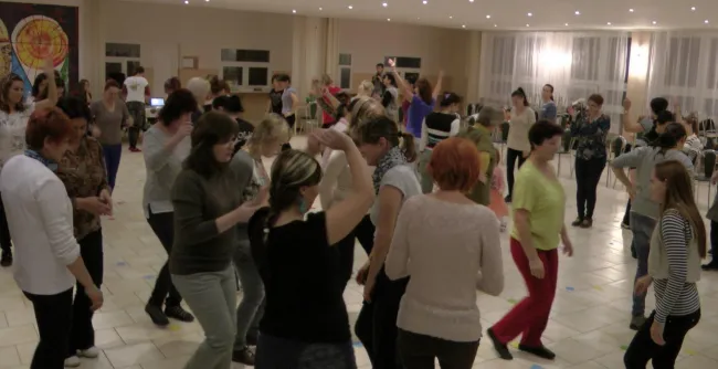 Ezeket a segédanyagokat a pedagógusok megvásárolhatták a foglalkozás után. Az eredmény szempontjából fontos, hogy a közös mozgásban, énekben felfedezzék a gyermekek az örömöt. A négyórás képzés remek hangulatban telt, s játék közben tanulhattuk meg a néptánc alaplépéseit. Ezeket a népi játékokat biztos vagyok benne, hogy a magyar alapiskola tanóráiba is integrálni fogják Tornalján, hiszen ennek segítségével rengeteg örömet adhatunk a felvidéki magyar gyermekek számára. A képzést a lelkes és mosolygós Bárdos Zsuzsa tartotta a felvidéki pedagógusoknak, akivel volt szerencsém egy rövid interjút is készíteni, amely a galériában lesz megtekinthető.