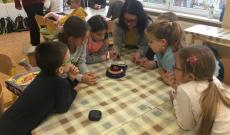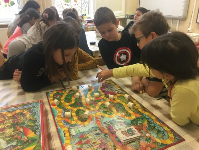 Pap Boglárkával, a pozsonyi Petőfi Sándor Program ösztöndíjasával együtt készültünk erre napra. A Szenczi Molnár Alapiskola Tudomány hetét tartott a gyerekek számára, de egy kis móka is belefért a fizikai és földrajzi jelenségek tanulmányozása mellett. Az alsó osztályosok olyan játékokat ismerhettek meg, amivel még mi játszottunk gyerekként. Főleg memóriajavító játékokkal szolgáltunk és a legjobb, hogy a tanítónőkkel és velünk együtt kártyáztak, játszottak a diákok. A csengő után pedig ki sem akartak menni az osztályból. Sőt az első osztály kétszer is visszajött hozzánk. Így legalább egy órán keresztül játszottak, figyeltek és segítették egymást. Meggyőződésem, hogy a hétvégén sok családnál előkerültek a kártyapaklik, játéktáblák.