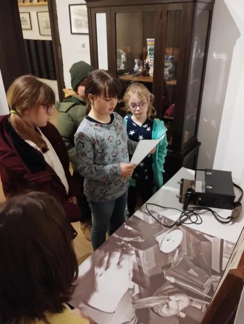 Az ebédet követően a kisiskolások egy mesét hallgattak Zoli bácsiról, majd részt vettek a „Kincskereső” nevű interaktív múzeumpedagógiai foglalkozáson. A mese alapján szerzett információkat az állomásokon kellett feleleveníteniük, ami izgalmas és tanulságos élményt nyújtott számukra.