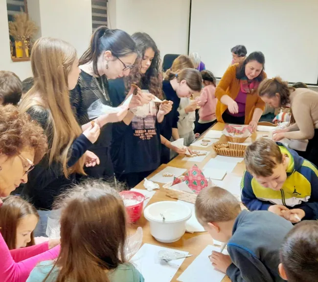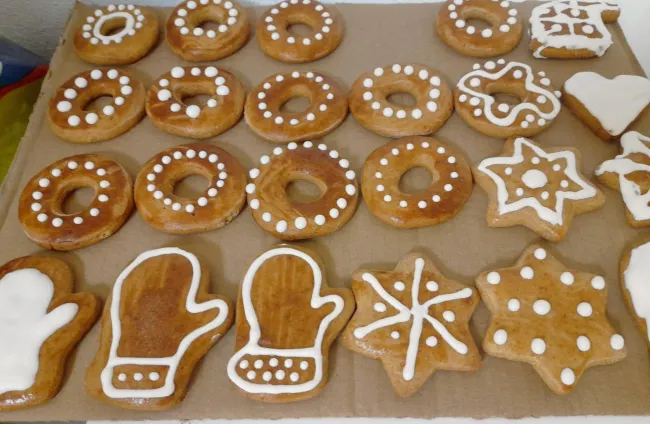 A jeles napra sokan eljöttek, hogy a gyülekezeti Nőszövetség tagjai által megsütött mézeskalácsokat szépen kidíszítsék. Voltak kicsik, és nagyok, sok-sok szorgos kéz. Miklósi Zsófia tiszteletes asszony irányításával kezdődött a munka. Ő mutatta be a mézeskalács díszítésének technikáját. A tiszteletes asszony arra is gondolt, ha túl sokan leszünk, egyszerre nem tud majd mindenki mézeskalácsot díszíteni. Nagy örömünkre ez így is történt.