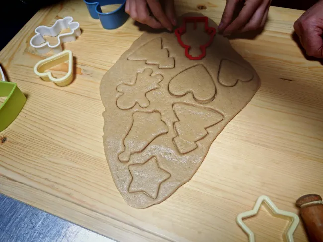 Előbb gyúrták, majd sodrófával nyújtották a tésztát, amely végül egy szív, egy karácsonyfa vagy egy csengő alakjában kapott végső formát. Pár perces sütést követően az aprók kreativitását kibontó díszítés következett, amelynek végeredményében sokáig nem gyönyörködhettünk, ugyanis pillanatok alatt eltűntek az asztalról – akárcsak az időközben betért Mikulás által szétosztott csokik tömkelege is, de ez így van rendjén.