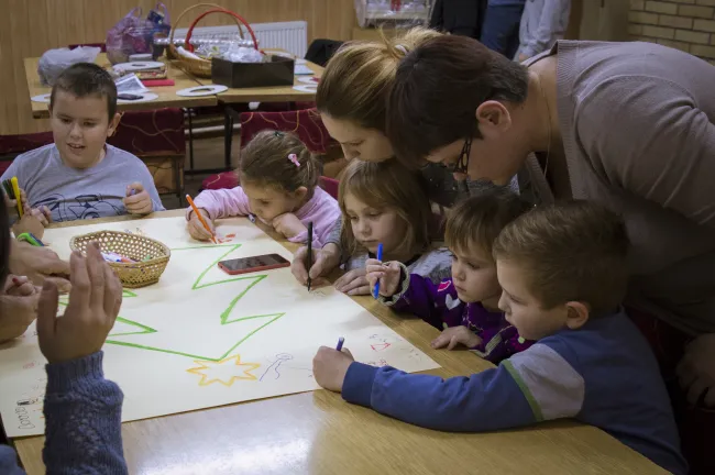 Körülbelül harminc általános iskolás és óvodás gyermekkel készítettünk közösen karácsonyi díszeket, koszorúkat és karácsonyi témájú rajzokat. A gyermekek többsége jól beszél magyarul, azonban vannak köztük olyanok is, akiknek szülei vegyes házasságban élnek, így a gyermekek inkább csak a szerb nyelvet használják. Nagy örömünkre szolgál, hogy ezek a szülők is fontosnak tartják, hogy a gyermekeik a magyar egyesület által szervezett rendezvényeken, foglalkozásokon is részt vegyenek.
