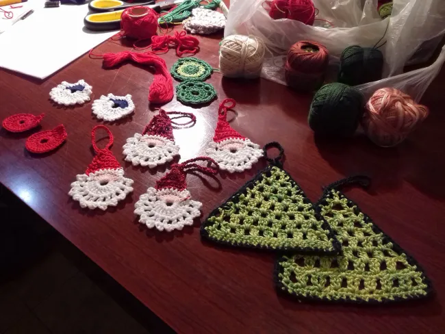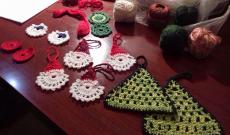 Úgy éreztem, kár lenne, ha más nem látná, milyen fantasztikus kézimunkák születnek, így jött az ötlet, miszerint érdemes lenne egy kiállításon megmutatni munkáinkat. Első körben tematikailag szűkítettük a kört és elkezdtünk a karácsonyra készülni, hiszen gazdag a tárháza az ünnepi dekorációknak. Először horgolt karácsonyfadíszeket készítettünk, majd szintén ennél a technikánál maradva kis asztali díszek is születtek. A horgolás, mint technika, azért is volt szerencsés választás, hiszen volt, aki még nem is tudott horgolni, mások pedig már a horgolt díszek kikeményítésének is több variációját tudták átadni a társaságnak. Így ismertem meg a cukorsziruppal és a nyers, reszelt krumpli levével való keményítést.