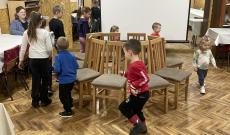Ezt követően két rövidfilmet is megnéztünk, amelyek az érzelmi, szociális és kognitív fejlesztés mellett ennek az ünnepnek a világunkban betöltött szerepét mutatták be. A nagy elmélyülést hozó filmvetítést követően két igencsak felpezsdítő csoportos játék került sorra, ahol az önfeledt percek - számomra, mint külső szemlélő számára - leírhatatlanok voltak. Ezután a népszerű „Székfoglaló” játék következett. Farsangi dalra sétáltak a gyerekek a kihelyezett székek körül és amikor leállítottam a zenét, mindenkinek le kellett ülnie egy székre. Aki nem talált helyet, kiesett és minden újabb kör után egy széket eltávolítottunk a játékból.