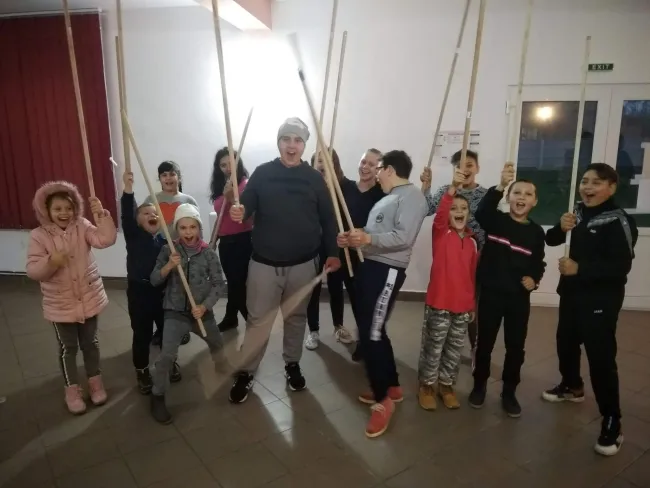 November óta tartok baranta edzéseket Temesváron, a Gerhardinum Római Katolikus Teológiai Líceumban. Ezalatt az idő alatt az alsó tagozatos diákok és a líceumban tanulók kipróbálták a szablyát, az íjat, a karikás ostort, különböző hosszúságú botokat és az önvédelmi gyakorlatokra is elkezdtek felkészülni. A barantának fontos része a fizikai felkészülés. Bőven volt része ebből is a fiataloknak.