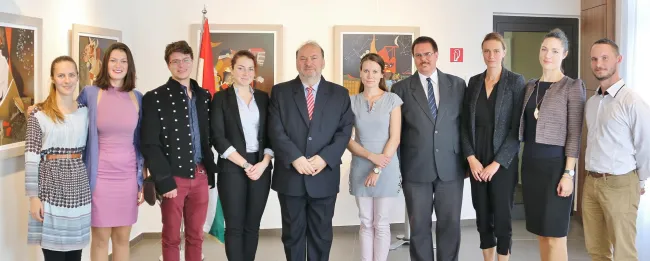 Másnap a pozsonyi Magyar Nagykövetségen tettünk látogatást, ahol Szabó József első beosztott, I. o. tanácsos, illetve Kanyar Gyöngyi I.o. tanácsos fogadtak bennünket a sajtó munkatársaival együtt. A beszélgetés főszónoka Szabó József, első beosztott volt, aki rendhagyó beszéddel készült, majd kissé kötetlenebb formában kérdezgetett minket az első tapasztalatokról, meglátásokról, s a kitűzött célokról. Egy állófogadáson vettünk búcsút.
