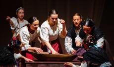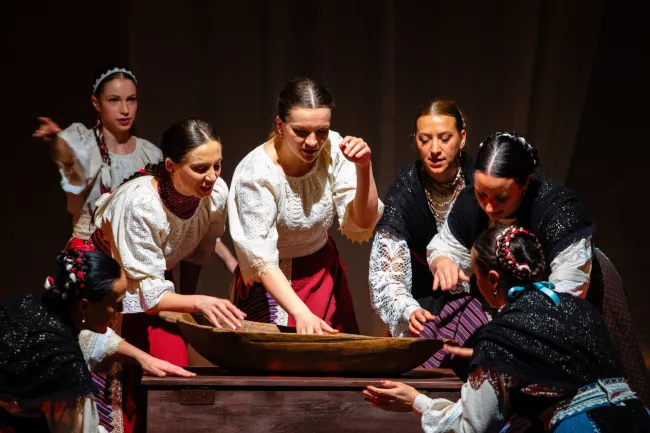 Az egész produkcióban pedig egy mára eltűnőfélben lévő, épp ezért megőrzendő örökségünk, a népi kultúra elemeit láttam megkérdőjelezhetetlen értékként felmutatva. A nők sokszor láthatatlan ünnepei, szertartásai e nagyszerű darabnak köszönhetően így váltak láthatóvá számunkra is.