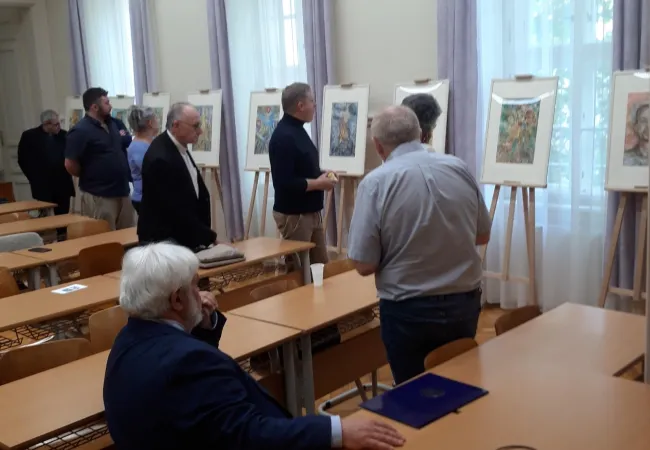 A rendezvény résztvevői bevezetőként megtekintették a Zsigmond Dezső által rendezett Apám Esterházy János című dokumentumfilmet, majd meghallgatták Sajgó Szabolcs gondolatait. A jezsuita szerzetes, papköltő nyitotta meg „Egy Istenarc van eltemetve bennem” című, a helyszínen felállított, Esterházy Jánosról szóló festmény kiállításomat. Szabolcs atya, aki maga is több alkalommal járt Alsóbodokon a megnyitót „LELKIÁLLÍTÁSSÁ” változtatva felkérte a jelenlevőket, válasszanak ki a maguk számára egy olyan képet, amely legjobban megszólította őket, s egy szóval vagy egy mondattal jellemezzék annak mondanivalóját. A megnyitó ezzel egy szép elmélkedéssé alakult át. Érdekes volt megtapasztalni, milyen személyes módon tudják megszólítani alkotásaim az embereket a képek egyetemes nyelvén közvetítve Isten szolgája Esterházy János üzeneteit.