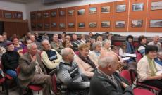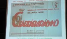 Müller Péter, a Helytörténeti Szakosztály vezetője köszöntötte az egybegyűlteket, hogy a múltat megidézve betekintést nyerhessenek a nagysikerű operett előadás kulisszatitkaiba, és ezáltal kicsit részesei lehessenek az egykori sikersorozatnak.