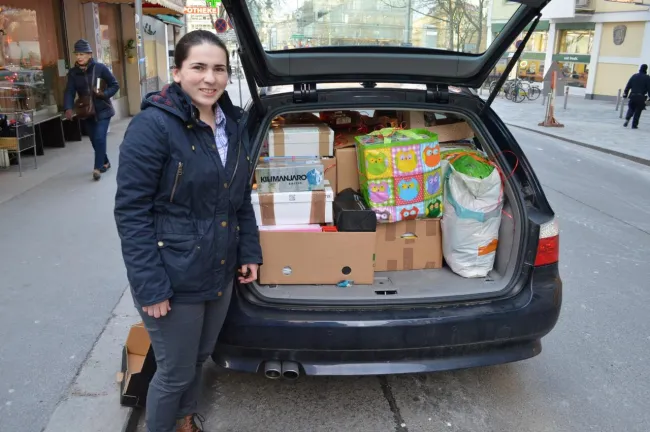 Szó szót követett, és bennem szépen lassan megfogalmazódott egy adománygyűjtő akció terve. Az AMAPED elnöke, Mentsik Szilvia lelkesen támogatta az ötletet, Csaba megismertetett Majzik Tamással, a dumbravéni magyar tanítóval, és Vanczer Zsuzsannával, a dumbravéniek falugazdájával, akik elmondták, mire lenne a legnagyobb szükség, valamint Zsuzsa felajánlotta, hogy a helyszínre juttatja az összegyűlt adományokat. November végén jártunk, így aztán adventi adománygyűjtést hirdettünk, néhány napon belül megérkeztek az első ajándékok. December végére a bécsi magyarok adományai megtöltötték az AMAPED irodai szekrényeit, január végére helyet kértek az asztalokon, a folyosón is. Elmondhatatlanul jó érzés volt látni a naponta szaporodó csomagokat.