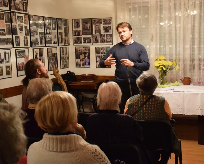 A beszélgetés után Nagy Bence közreműködésével (aki Drávaszögben és Moldvában töltötte szórványgondozó munkáját) gyimesi és felcsíki népzenét hallgattunk, és megismerkedtünk az ütőgardonnal, az erre a tájegységre jellemző hangszerrel.