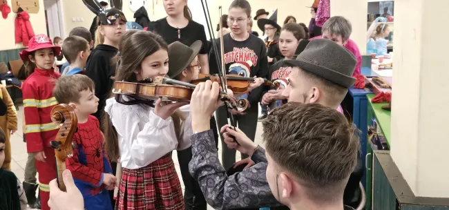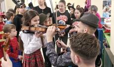 Miután kitáncolták magukat, a gyermekeknek lehetőségük volt, hogy kézbe vehessék, kipróbálhassák a zenekar által használt hangszereket, a hegedűket, a brácsát és a gordonyt. A fiatalok izgatottan felsorakoztak, és a zenekar tagjainak vezetésével ki-ki közelebből is megnézhette, megfoghatta az érdeklődésének tárgyát. Felejthetetlen élmény volt közelről látni azt az örömöt, a hatalmas mosolyt, ami megjelent az arcukon, amikor egyesével megszólaltatták az adott hangszereket.