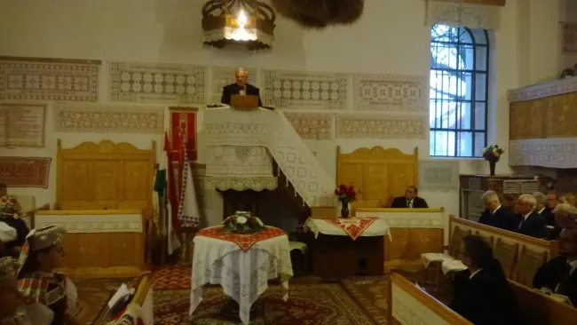 A falu apraja- nagyja szeretettel fogadta a Püspök Urat a templom előtt felsorakozva. Szinte mindenki kalotaszegi népviseletben érkezett: ki pártában, ki muszujban, ki bujkában. A Vincze Minya István esperessel, valamint a prominens egyházi képviselőkkel együtt érkező delegációt Molnár Irma, lelkészasszony köszöntötte. Jelen volt Dézsi Zoltán, egyházkerületi főgondnok, Ballai Zoltán, gazdasági osztály előadótanácsos, Szegedi László Tamás, generális direktor, Ungvári Éva, pénzügyi ellenőr, Kántor Csaba, főjegyző, püspök-helyettes, Gyenge János, személyzeti osztály előadótanácsos, Kiss Gábor, sajtóreferens valamint Benk András, a kalotaszegi egyházmegye főgondnoka.