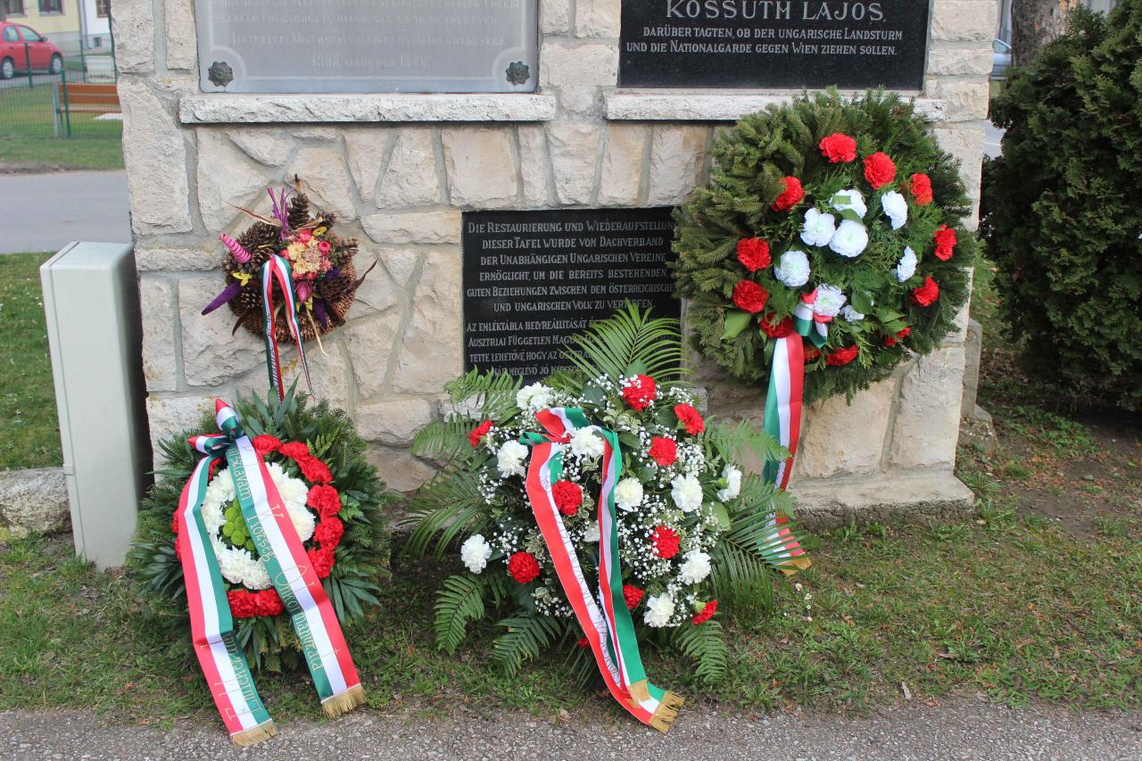 Idén 30. éve, hogy a rendezvény minden alkalommal a Kossuth emléktábla megkoszorúzásával kezdődik. 1906-ban már fent volt a templom oldalán az emléktábla, mely a világháború időszaka alatt sajnálatos módon eltűnt a templom faláról és a háborús zűrzavargások következtében lekerült a templom alagsorába. Az 1983-ban alakult Ausztriai Független Magyar Kultúregyesületek Csúcsszervezetének egyik kezdeti megmozdulásaként, a csúcsszervezet indíttatására és a miklósfalvi polgármester hozzájárulásával és támogatásával az emléktábla kikerült az alagsorból az eredeti helyére, a templomhoz közeli fő parkba egy monumentális kőemlék oldalára helyezve.