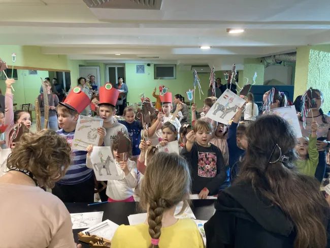 A foglalkozás egy közös énektanulással ért véget, amit citera kísért, és minden gyerek teli torokból énekelt büszkén lóbálva a kis kezük munkáját.