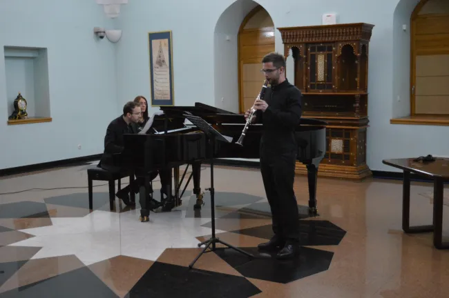 A telt házas közönség előtt két fiatal diplomás zenész, Muratović Timur (klarinét) és Perković Ivan (zongora) lépett fel. A műsoron B. Kovacs, F. Liszt, F. Devienne, C. Debussy, O. Messiaen és A. Romero művei szerepeltek. Reméljük, hogy a fiatal zenészek a közeljövőben nemzetközileg elismert, híres művészekként is játszani fognak a nagyközönségnek.