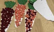 A foglalkozásokat követően kézműveskedéssel is készültem a kicsiknek. A "Visszajött a répa" meséhez kapcsolódóan a gyerekek egy-egy répát díszíthettek morzsolt krepp papírral.