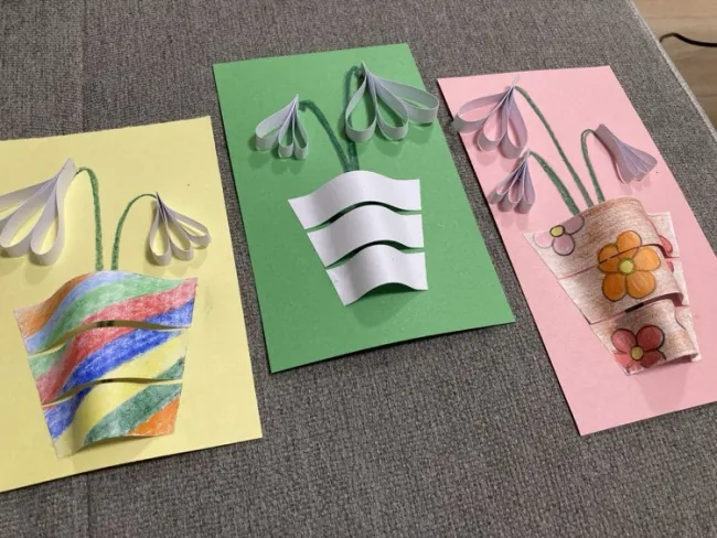 "A télkergető hóvirág" mese kapcsán kis képeslapokat készítettünk.