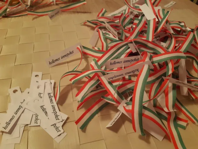 Miközben ezekről beszélgettünk, kezünk alatt megszülettek az első mézeskalácsok, s sütés után a díszítésnek sem szabtunk határokat. Nagyon jó hangulat közepette több száz szebbnél szebb mézeskalács pihent meg a tálcákon. A mézeskalácsokat becsomagoltuk celofánba, kis fenyőággal díszítve és nemzeti szalaggal átkötve. Összesen 170 darab ajándékcsomagot készítettünk el.