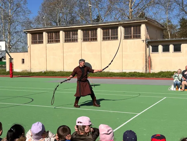 A tematikus előadás során a zene, a történelem és a harcművészet eszközeit ötvözzük. A gyermekek figyelmét egy dal és egy tradicionális harcművészeti fegyver bemutatásának váltakozó ritmusával ragadjuk meg, így aktívan és élményszerűen kapcsolódnak a magyar múlt értékeihez. A műsor zárásaként a gyerekekkel közösen éneklünk, majd ünnepélyesen fogadalmat teszünk: megőrizzük és továbbadjuk a magyar örökséget, és nem engedjük, hogy az feledésbe merüljön.