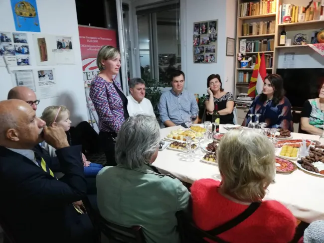 A Macedóniai Magyarok Teleház Szervezete szeptember 28-án fogadást tartott a szervezet székházában. A Teleház meghívásának eleget téve, az eseményt jelenlétével megtisztelte Dr. Dux László, Magyarország macedóniai nagykövete, Tihanyi Krisztina, újonnan kinevezett első beosztott diplomata és családjaik.