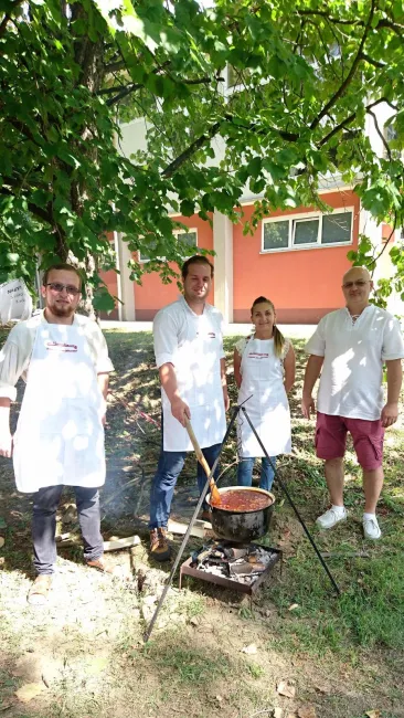 A főzőversenyre szombaton került sor. Nagy Barna és felesége, Gabriella, valamint Boér Zsombor készítették el a szebeni gulyást. 12 óra körül már érezni lehetett a finom illatokat a Tiszaligetben. A mi gulyásunk marhahúsból készült. A fiatalok fatálban, szépen feldíszítve vitték a szakmai zsűri elé főztjüket.